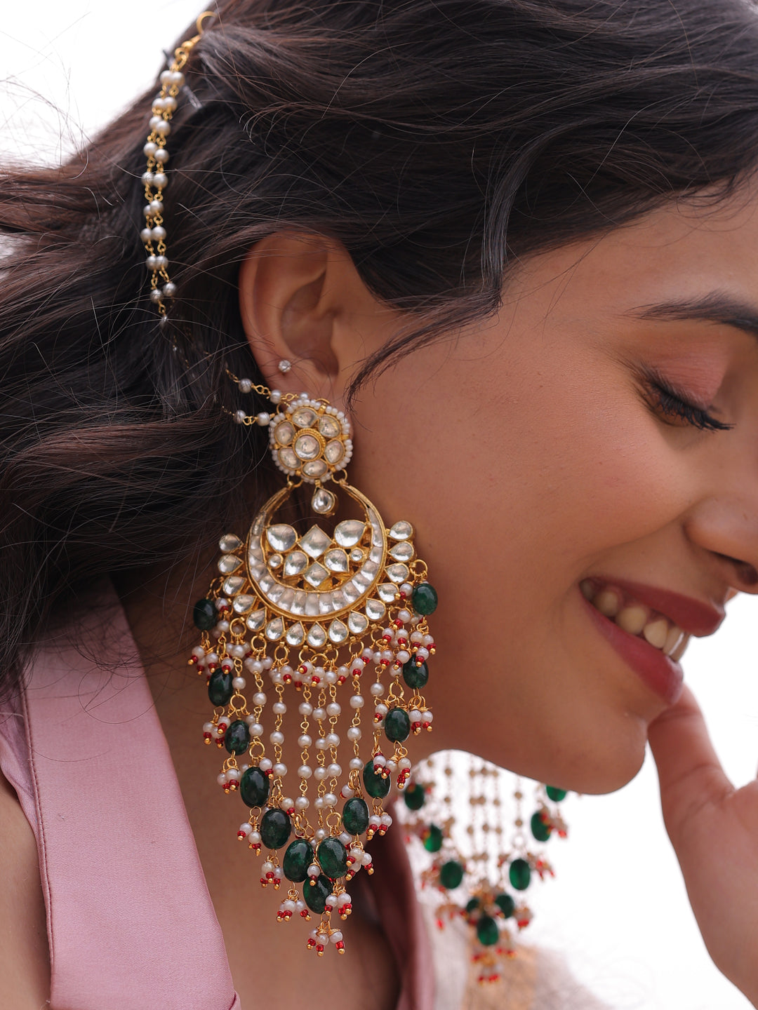 Anvika Enchanted Heritage Pachi Kundan Stud Earchain