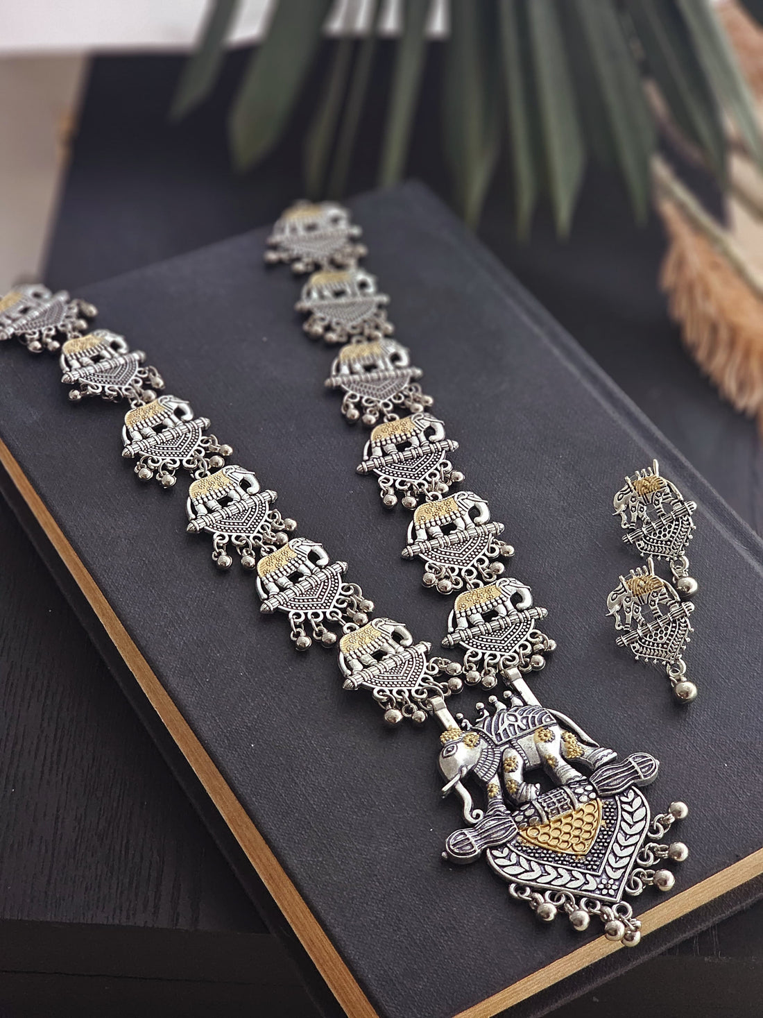 Tusker Treasures German Silver Elephant Pendant Necklace Set with Bracelet