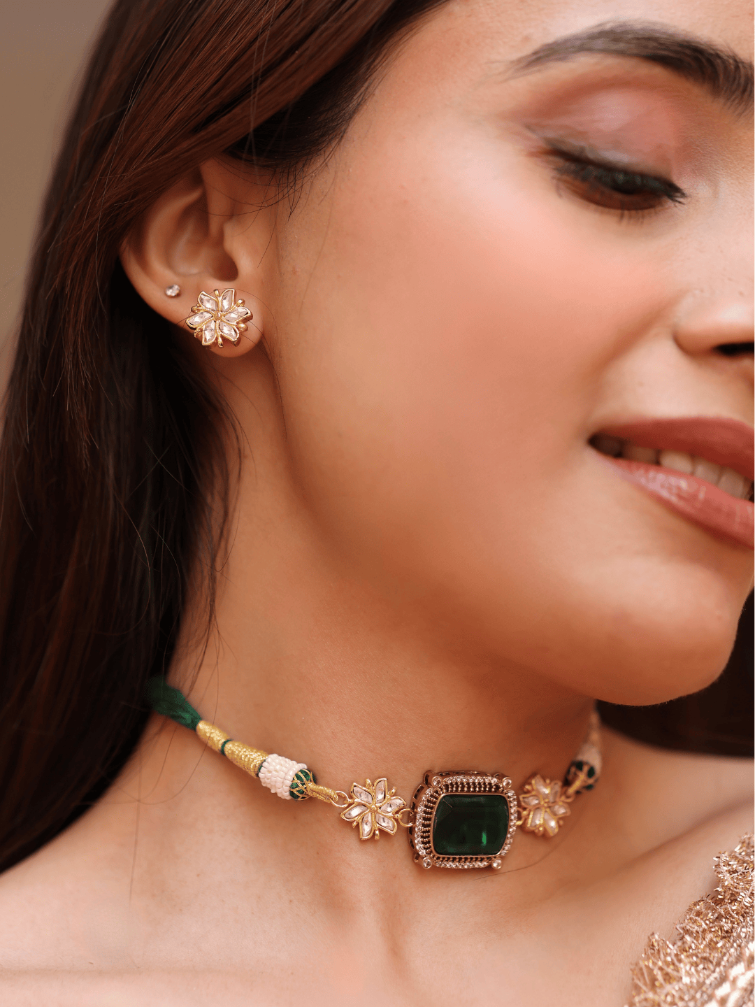 Riana Handmade Pachi Choker Set with Kundan Earrings