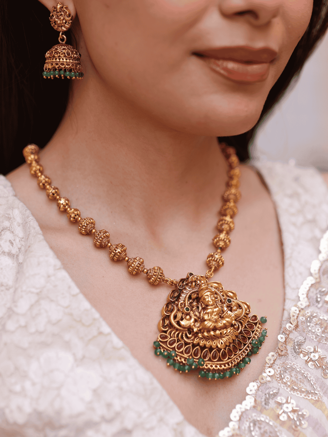 Jiva Leaf Motif Golden Elegance Necklace Set