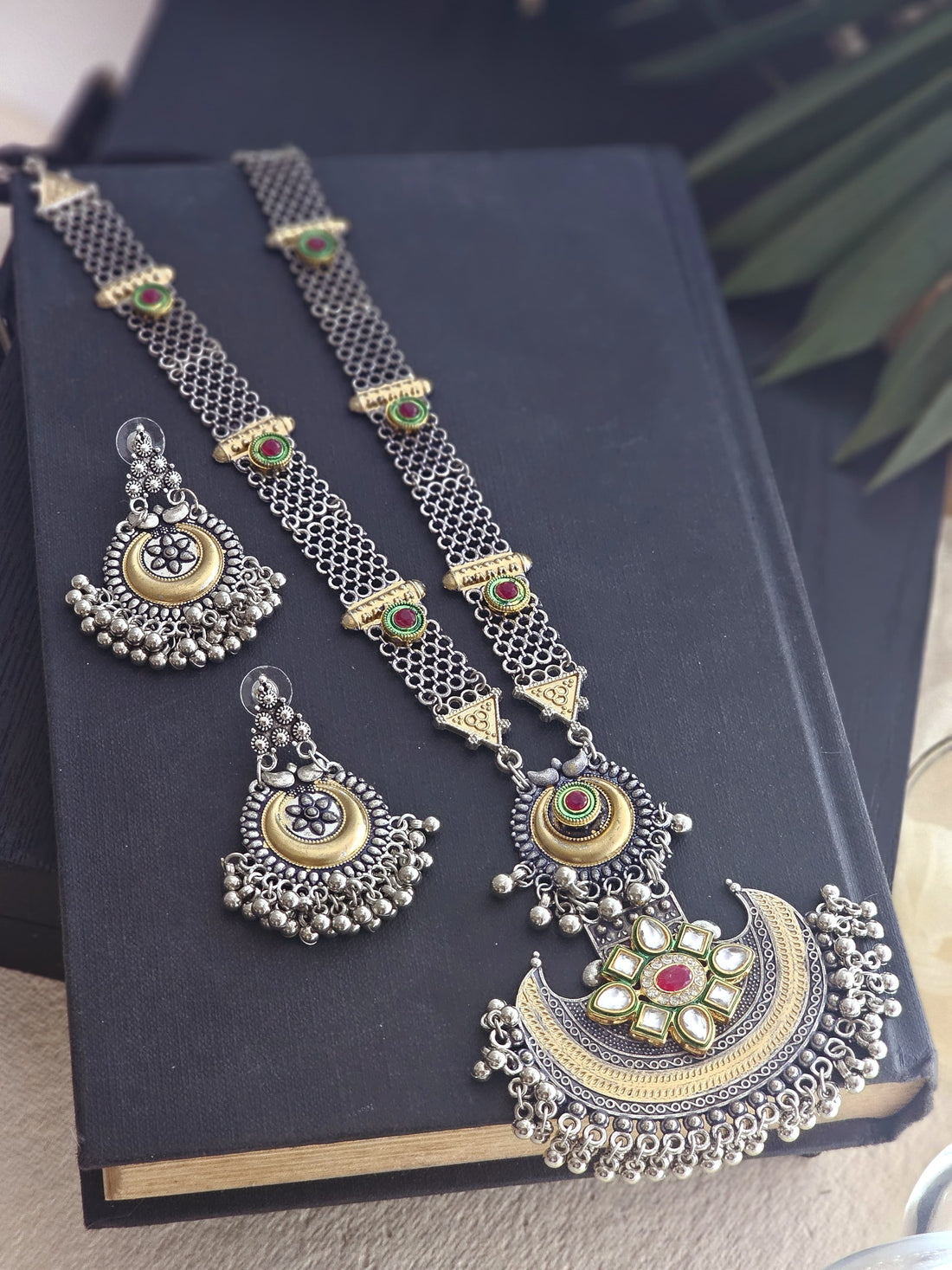 Chandini Raga German Silver Cresent Moon Necklace Set