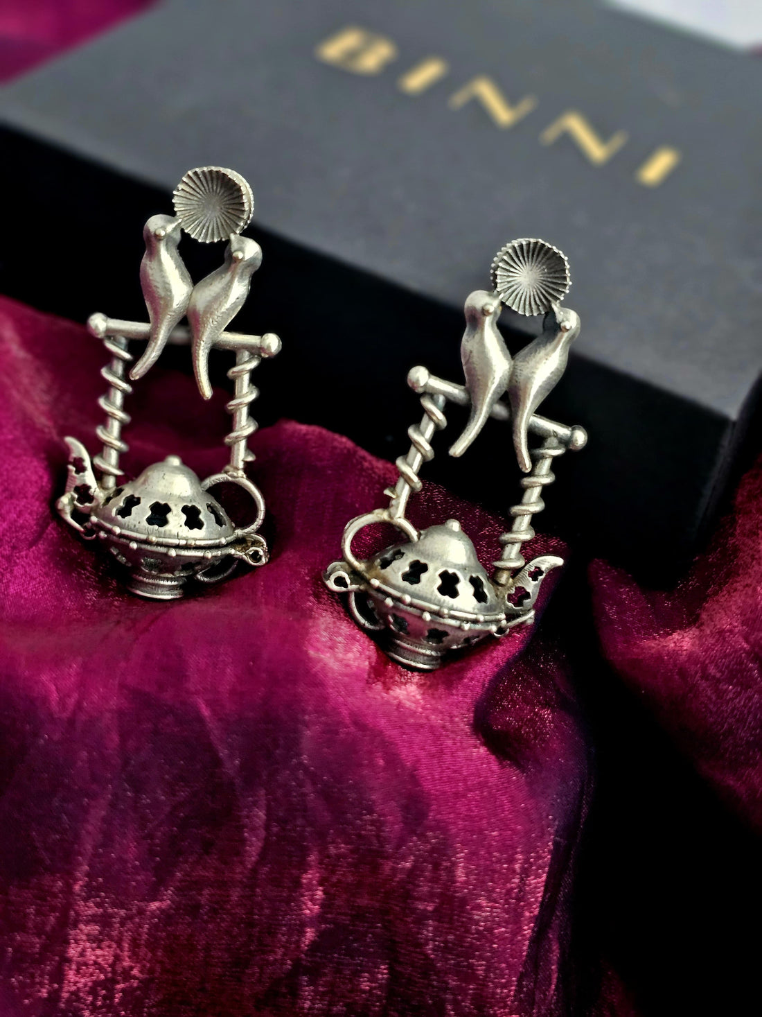 German Silver Bird Stand Drop Earrings