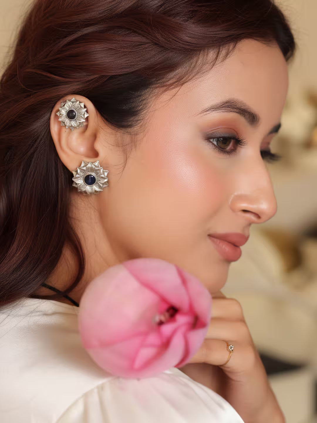 Anvika Regal Blossom Silver-Plated Ear Cuff