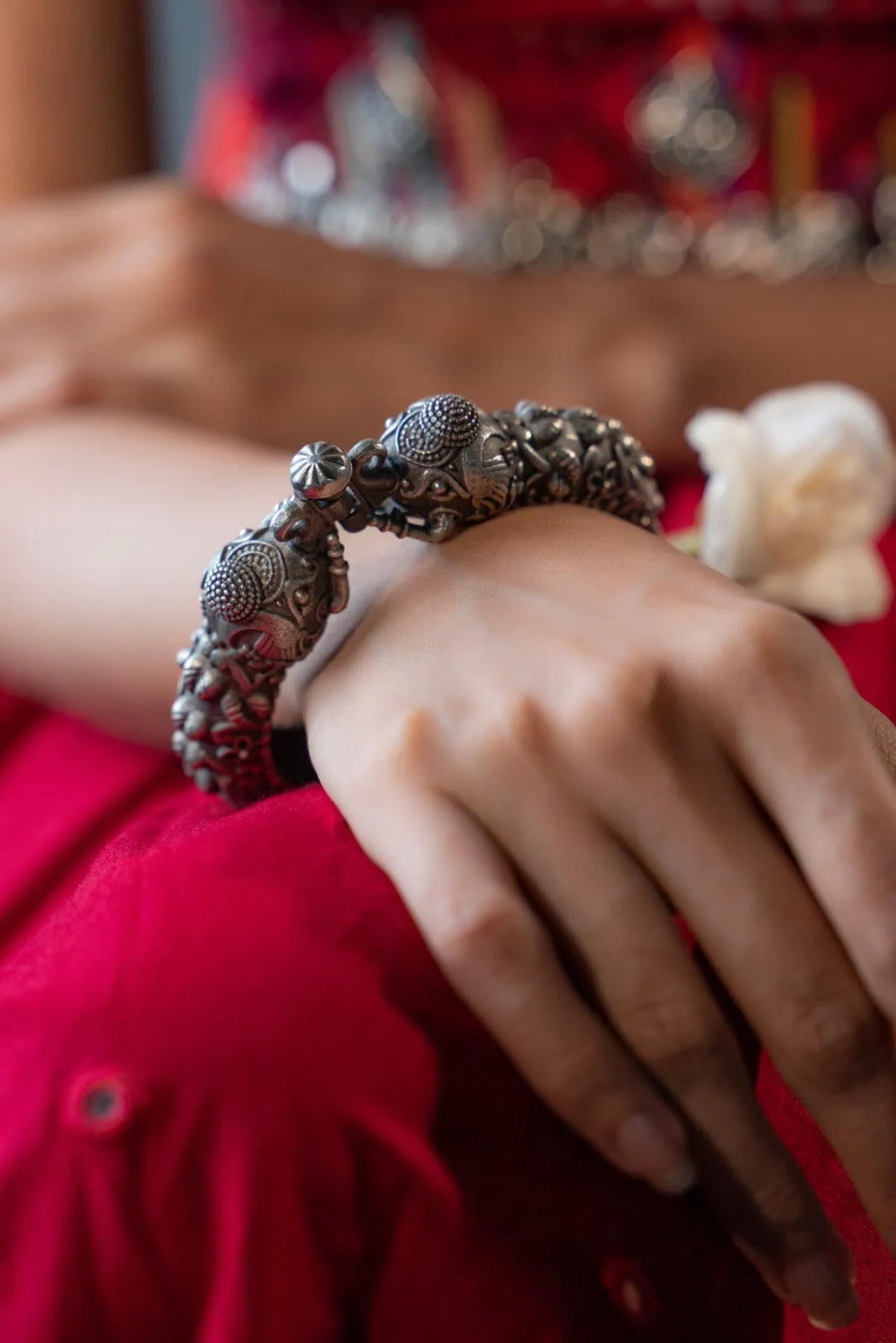 Experience the perfect harmony of tradition and convenience with the Antique Silver Brass Openable Bangles....