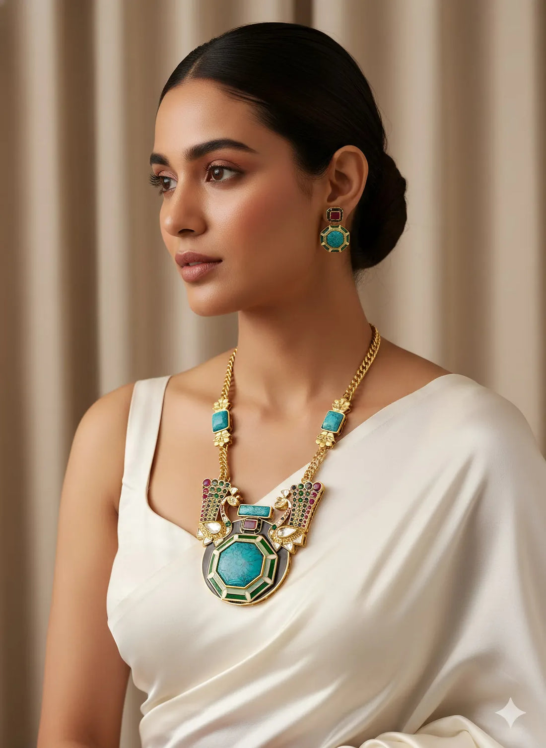 Meera Majestic Turquoise Grace Radiance Statement Necklace Set