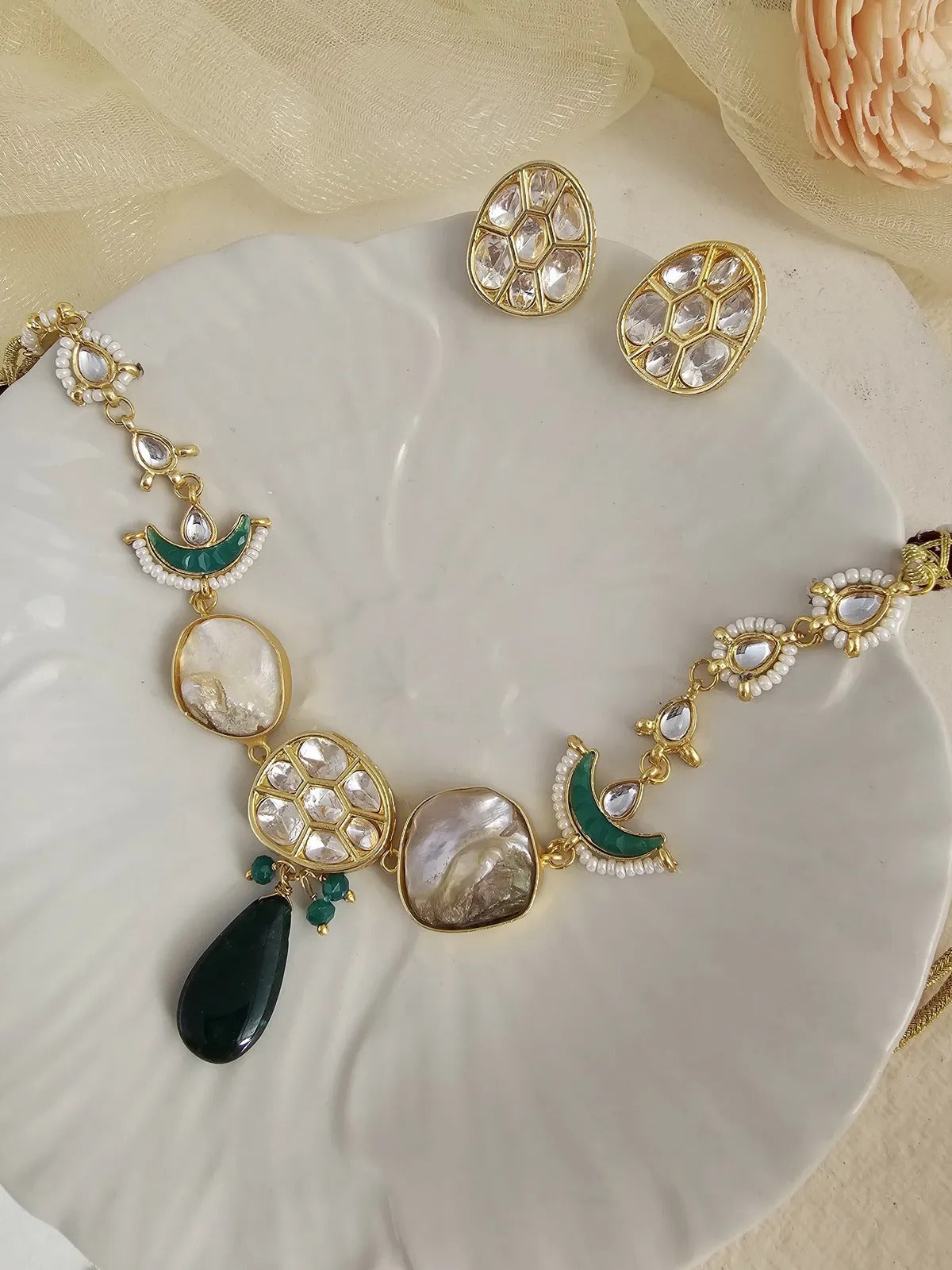 The necklace features an adjustable tassel back closure, allowing for a secure and customizable fit. This versatile set is a perfect fusion of traditional and contemporary designs, making it an ideal choice for festive celebrations, weddings, or special occasions.