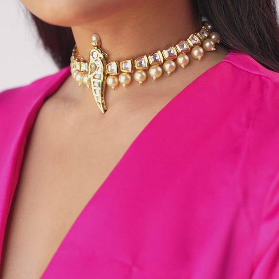 Avyana Radiant Kundan Bird Choker Set With Pearls