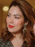 The set is completed with matching dangling earrings, featuring the same exquisite meenakari detailing, and secured with push-back closures for a comfortable and reliable fit, adding the perfect finishing touch to the ensemble.