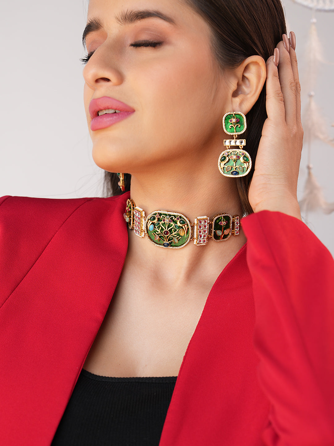 Aira Dark Green Meenakari Choker Set