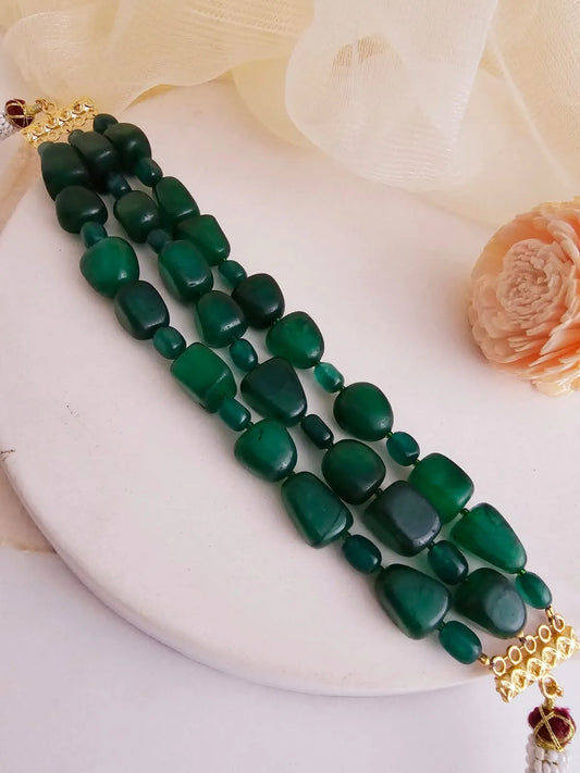 Celebrate timeless beauty with this exquisite Pachi Kundan necklace set, a masterpiece that gracefully blends the warmth of rosy hues with the elegance of intricate kundan artistry. Designed to add a touch of charm and sophistication, this set is perfect for your most cherished occasions.