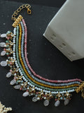 Delicate yet striking, the Pastel Symphony Choker Set combines the vibrant charm of pastel-toned hydro beads with the elegance of intricate pachi work along the bottom edge. Multiple strands of colorful beads create a layered and modern look, while the traditional craftsmanship adds a timeless touch.
