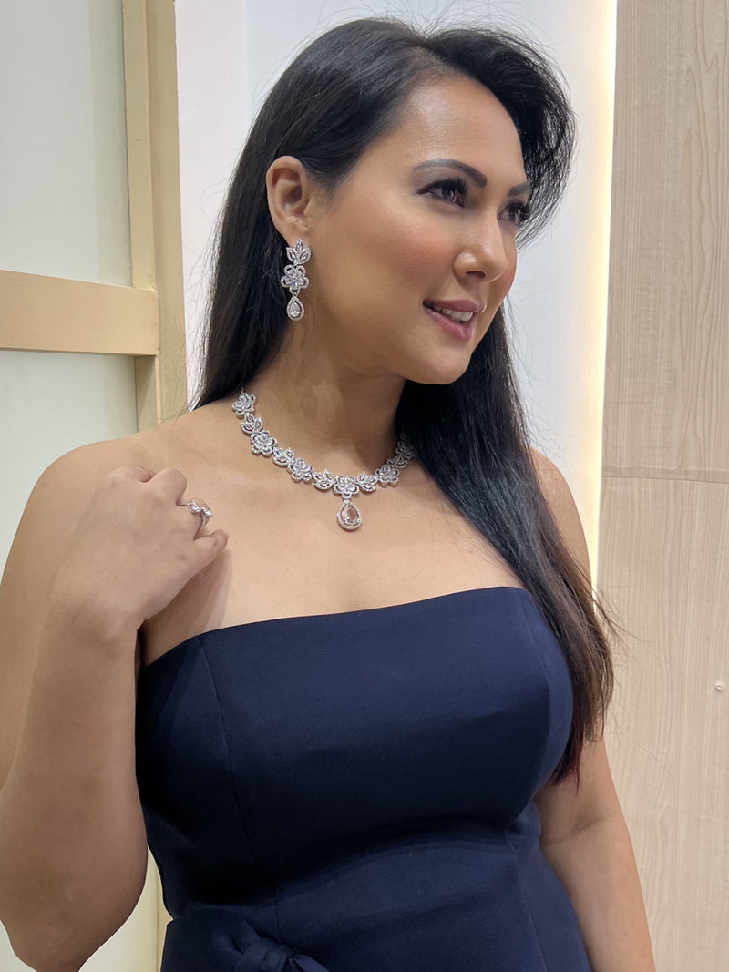 Embrace timeless elegance with the Ethereal Charm Set, a stunning AD necklace set that exudes delicate sophistication. Designed with shimmering American Diamonds arranged in a graceful pattern, this set captures the essence of celestial beauty and effortless charm.