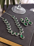 Step into a world of enchanting beauty with the Forest Glimmer Necklace Set, a stunning AD set inspired by the mystical allure of the forest. Adorned with deep green stones and shimmering American Diamonds, this set captures the essence of nature’s hidden treasures, radiating a soft yet captivating glow.