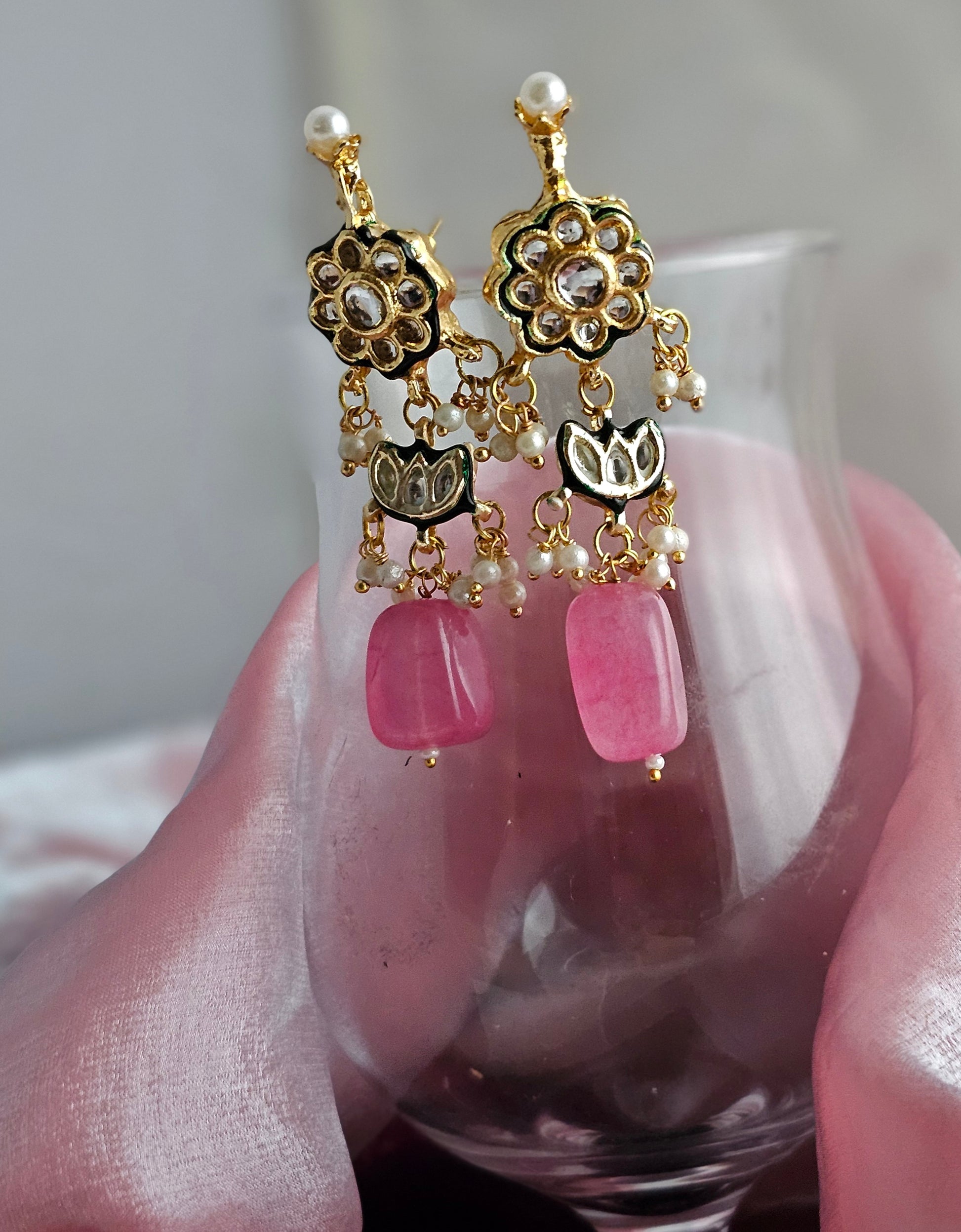 Embrace the grandeur of tradition with this necklace, a symbol of sophistication and grace. It features a tassel closure for an adjustable fit, while the matching earrings come with secure pushback closures for comfortable wear.