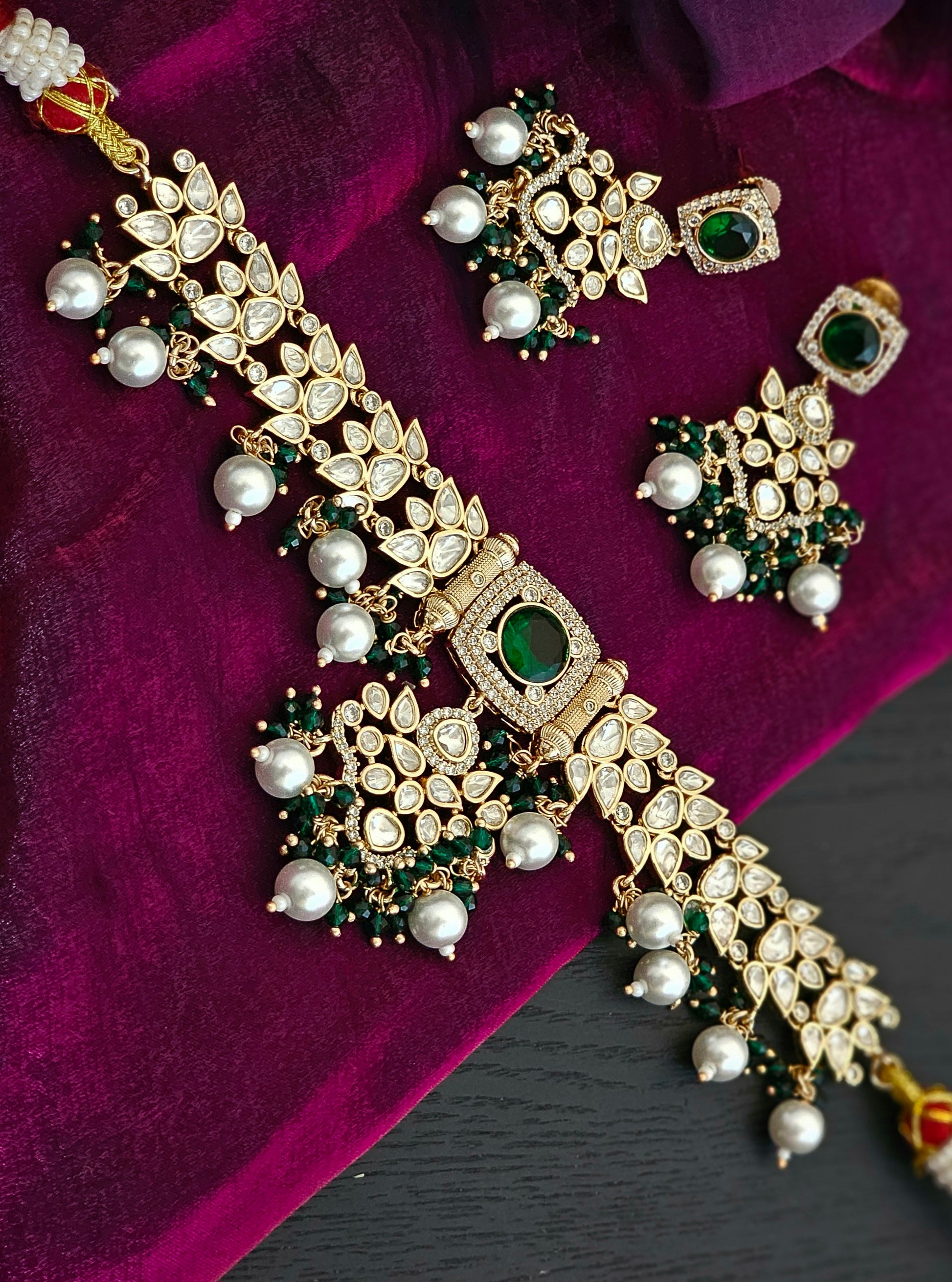 Avni Majestic Emerald Radiance AD Necklace Ensemble