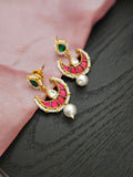 Step into a world of timeless elegance with this exquisite necklace, a masterpiece that celebrates the splendor of traditional craftsmanship. Adorned with intricately handcrafted motifs, it is embellished with sparkling pachi kundan work and lustrous pearls, exuding an aura of royal grandeur.