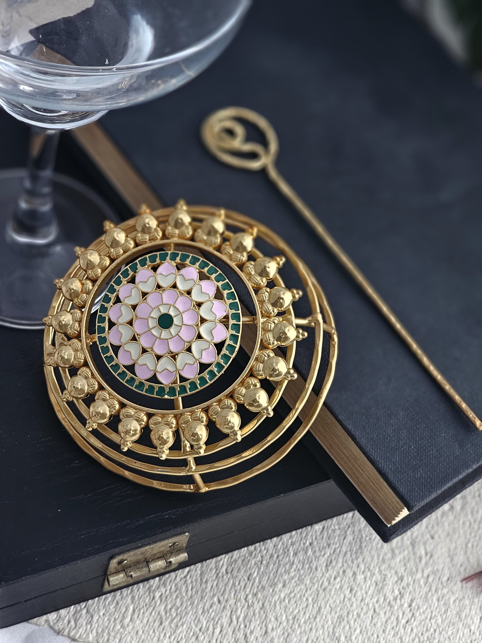During transit, embellishments or findings may occasionally loosen, requiring a simple hand fix without specialized toolsโwe kindly seek your cooperation in making these minor adjustments.