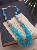 Add a touch of serene elegance to your ensemble with this multi-strand necklace, featuring delicate, faceted light-sky blue glass beads arranged in cascading layers. The layered design exudes grace and sophistication, making it a versatile accessory for any occasion.