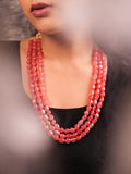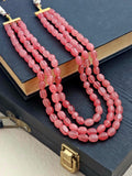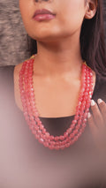 This elegant necklace is a testament to refined craftsmanship and timeless style. The multi-layer design showcases three layers of luscious light pink Quartz stones, each strand meticulously arranged to create a harmonious and graceful flow. The soft pink hue of the beads adds a touch of delicacy, making it a perfect accessory for both formal and festive occasions.