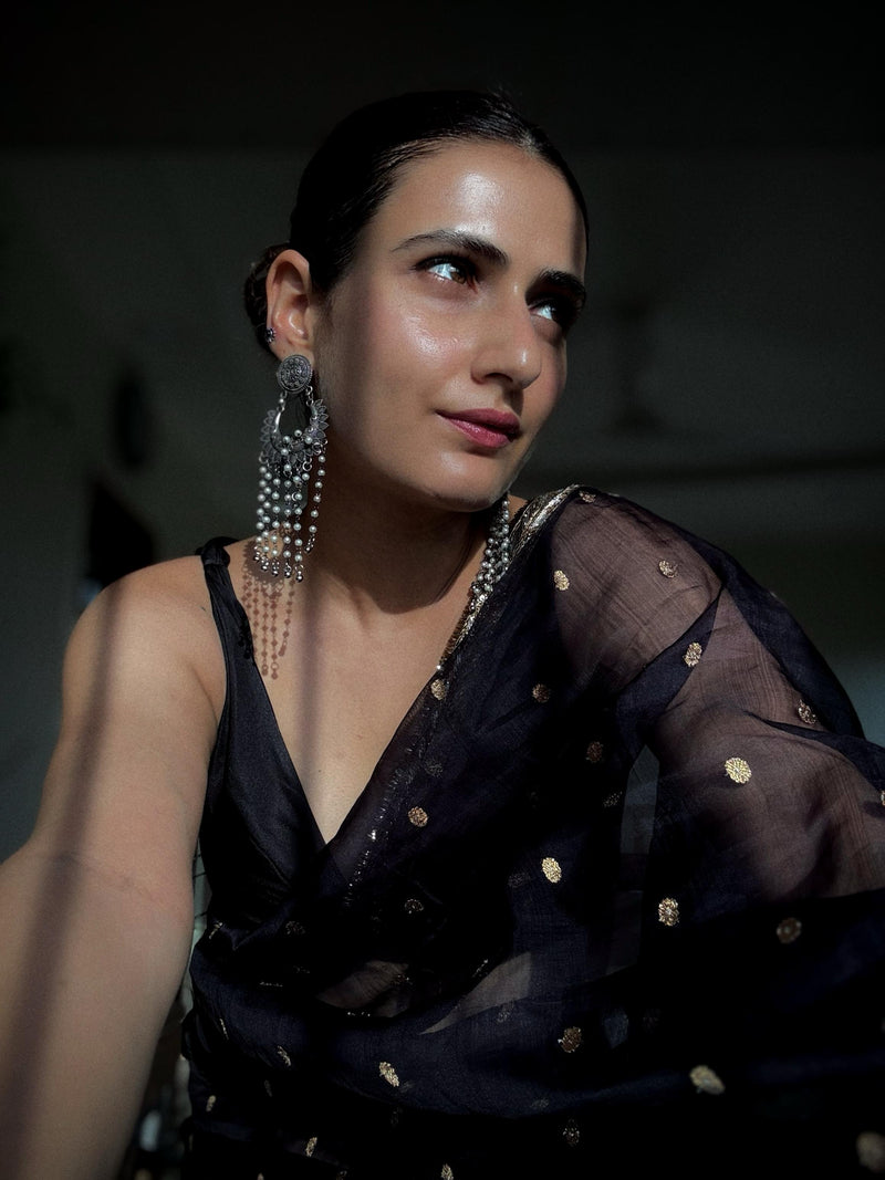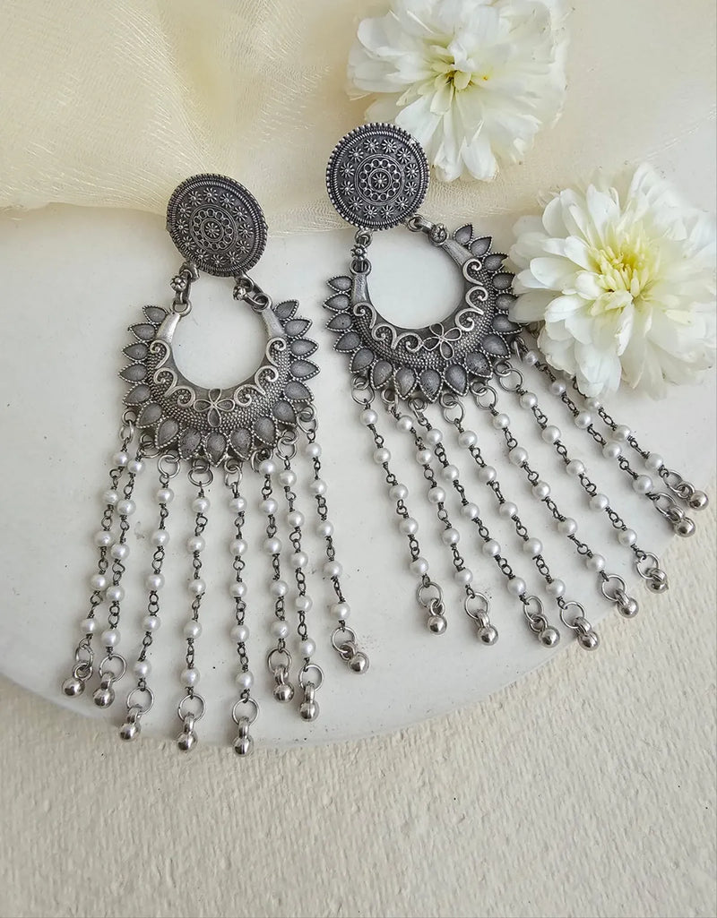 Ananya Contemporary Silver-Plated Drop Earrings With Pearls