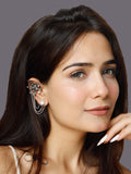 Add a touch of elegance to your ensemble with these exquisite Silver Plated Flower-Shaped Earcuff Earrings. Designed in a delicate floral motif, these earrings feature a harmonious blend of a stud design and an earcuff, offering both charm and uniqueness.