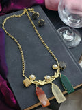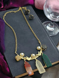 Discover the charm of this striking necklace set, featuring a sleek rectangular pendant adorned with three vibrant multicolor Monalisa stones. Accented with luminous pearls and shimmering stones, the design exudes elegance and grace, making it a captivating accessory for any occasion.