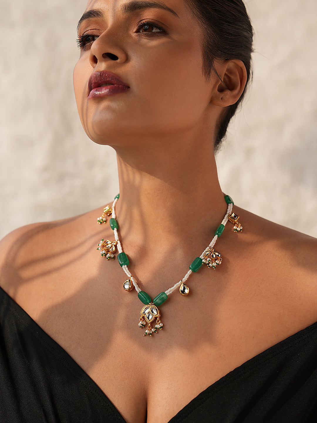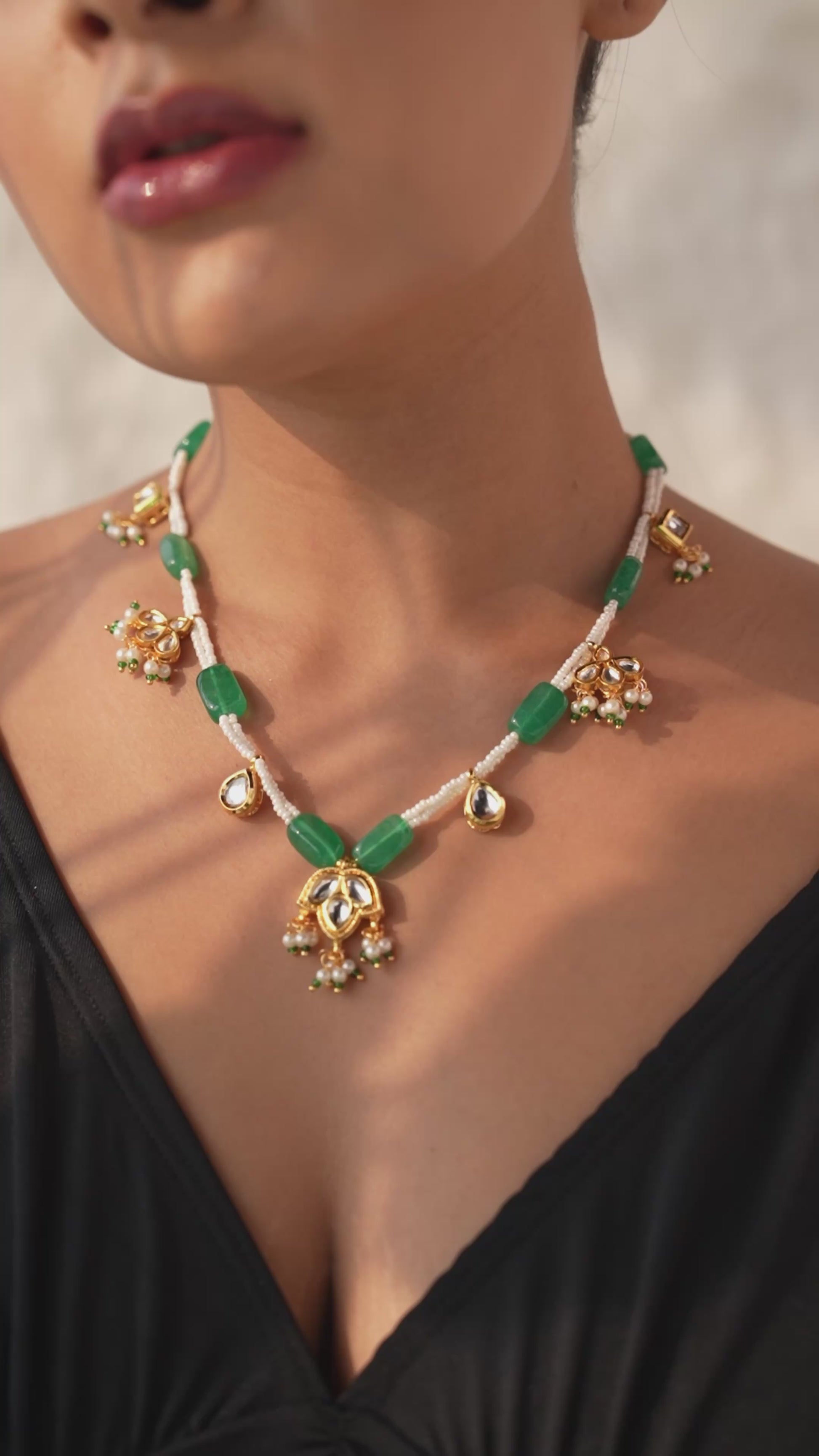 Designed for comfort and style, the necklace is secured with a reliable hook closure and rests gracefully on the upper chest. Its timeless elegance makes it the perfect choice for festive celebrations or formal gatherings.