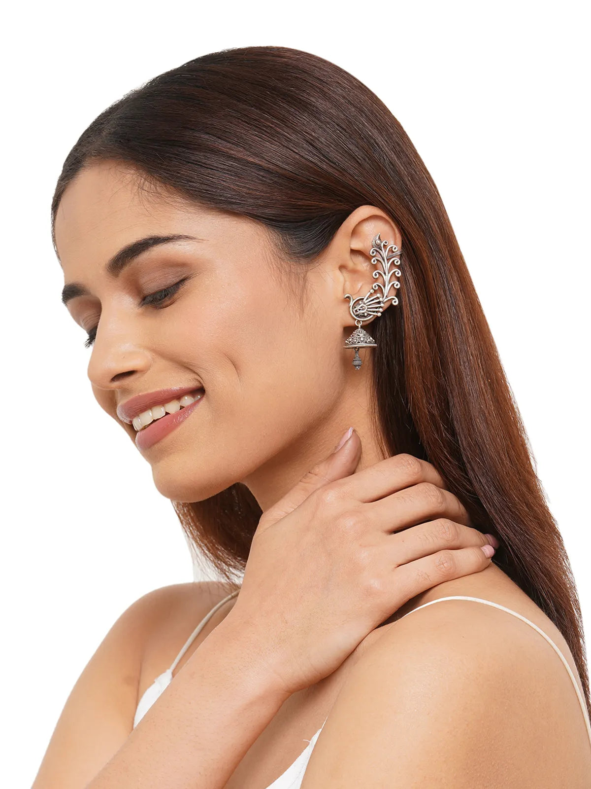 Pakhi Majestic Silver Peacock Ear-Cuff Jhumka