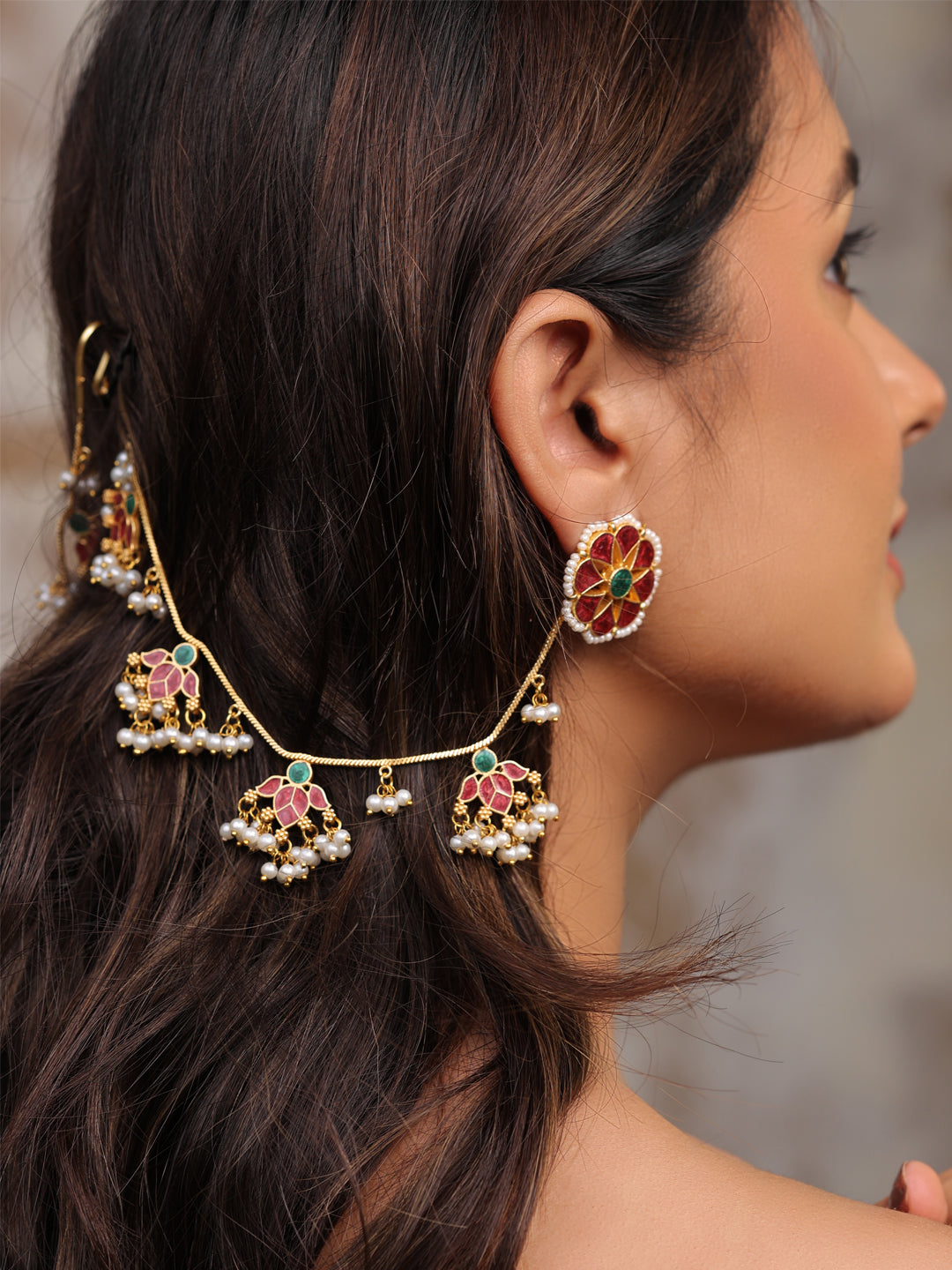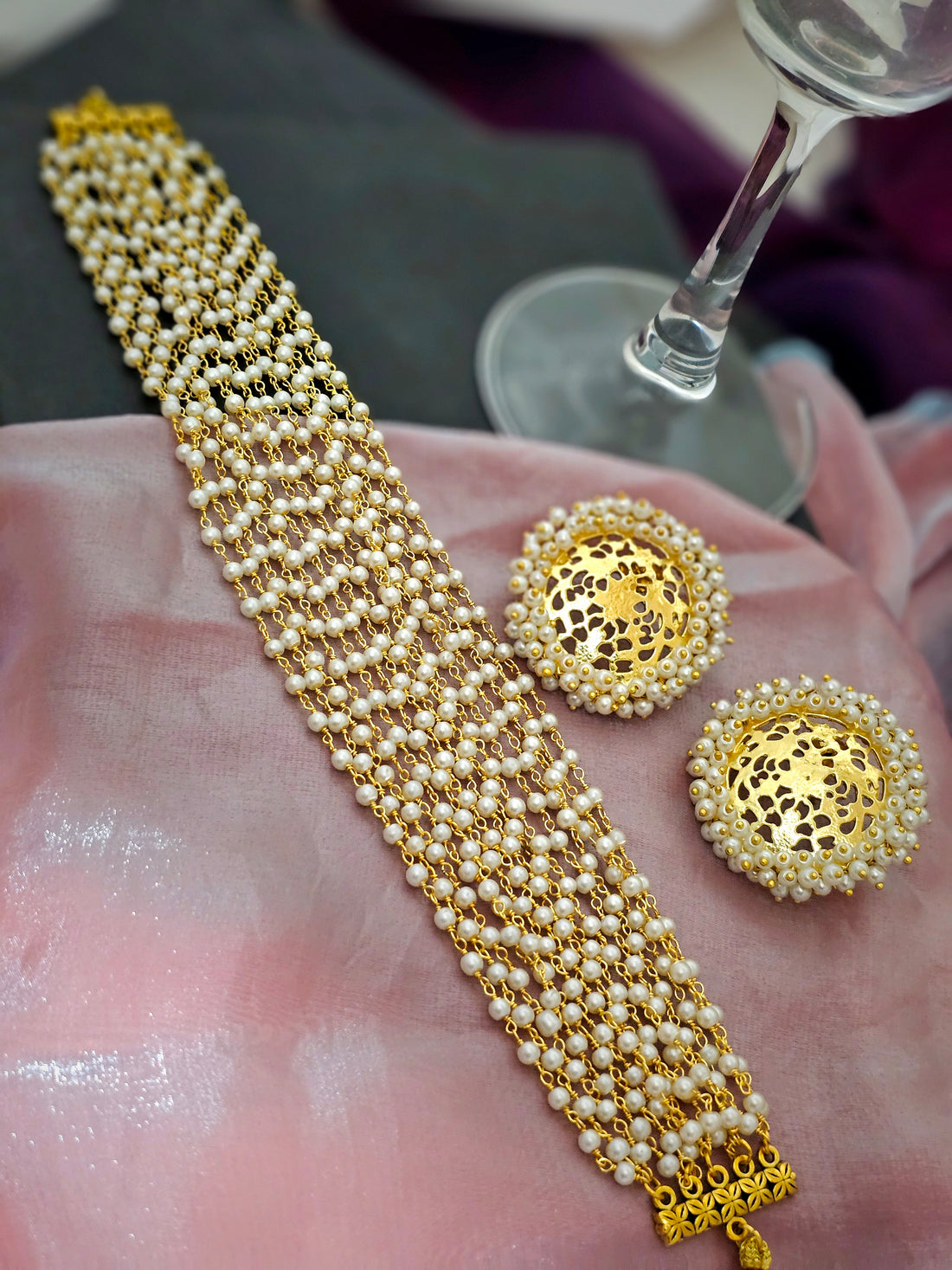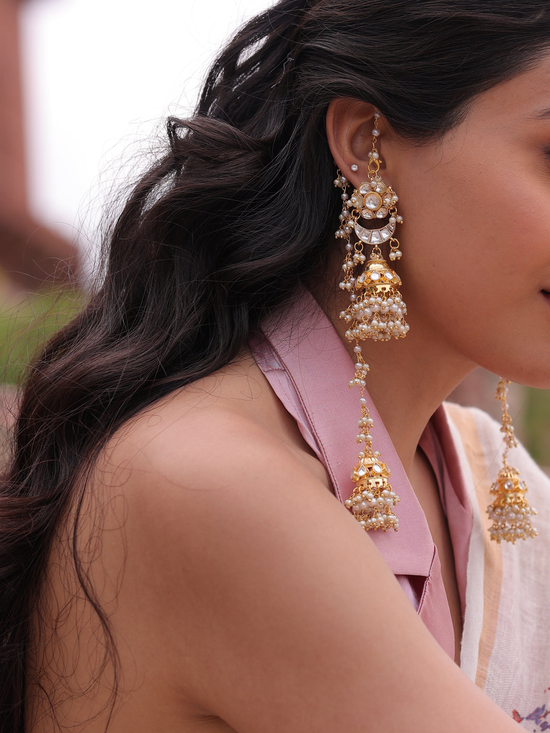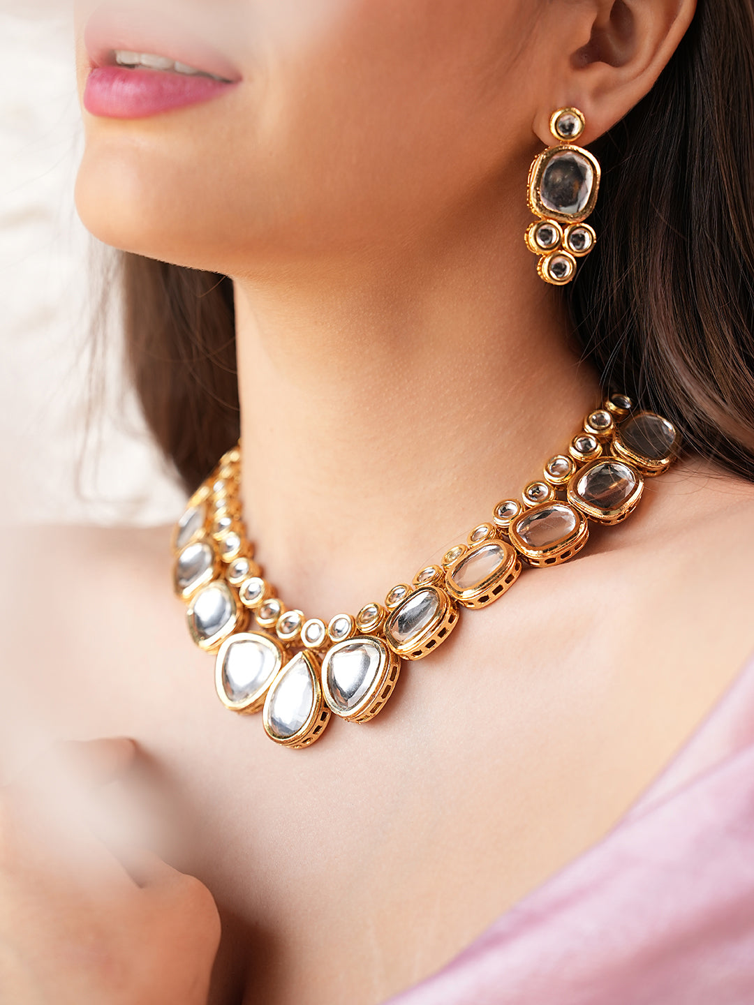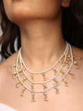 An ode to timeless artistry, this layered necklace showcases the intricate beauty of Pachi Kundan work. Each layer glistens with handcrafted kundan elements, exuding a regal charm that complements both festive and traditional ensembles. A statement piece for the elegant soul.