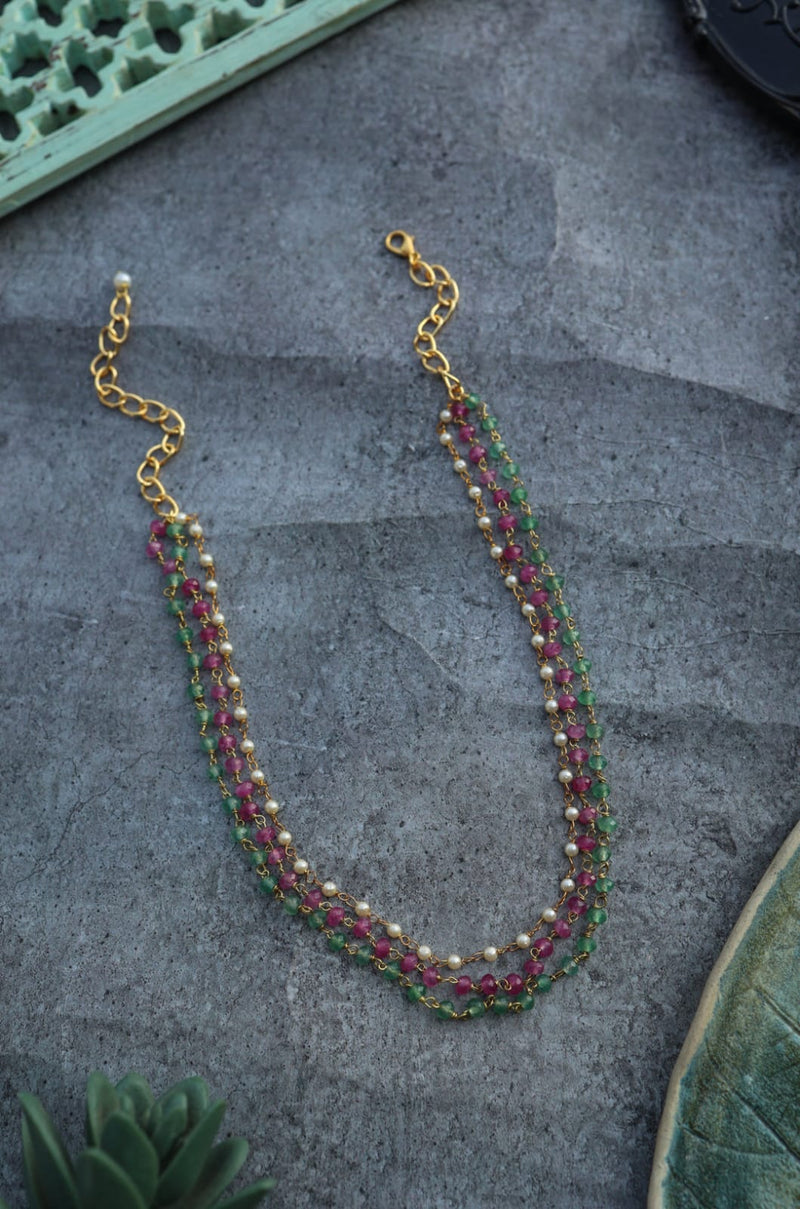 Elegantly layered in three strands, this onyx necklace exudes timeless sophistication. The deep, polished stones create a sleek silhouette that flows with quiet strength — perfect for refined occasions and graceful everyday statements.