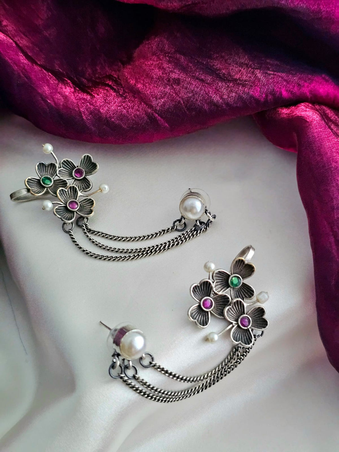⦿ 𝐆𝐞𝐫𝐦𝐚𝐧 𝐒𝐢𝐥𝐯𝐞𝐫 𝐁𝐚𝐬𝐞: Both the necklace and earrings are made from high-quality German silver, ensuring durability and elegance.