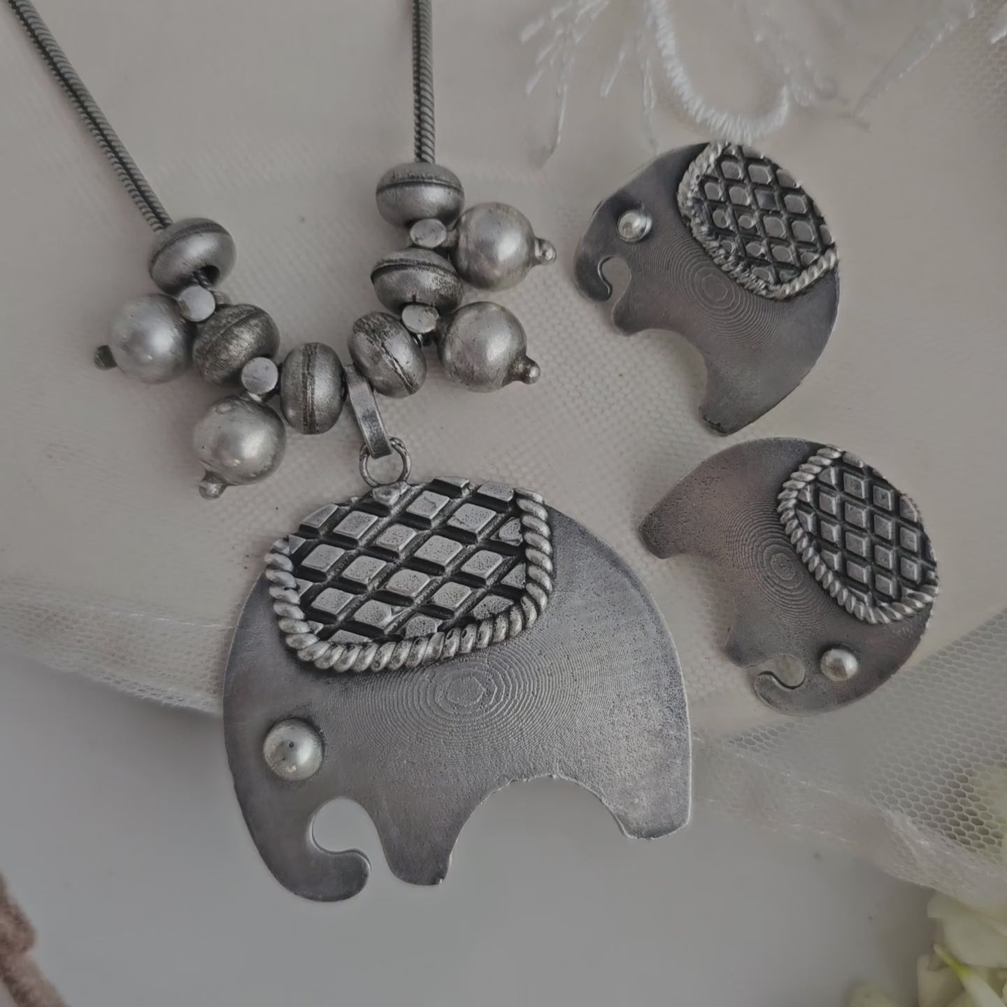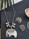 Gaj-Gamini German Silver Elephant Pendant Set