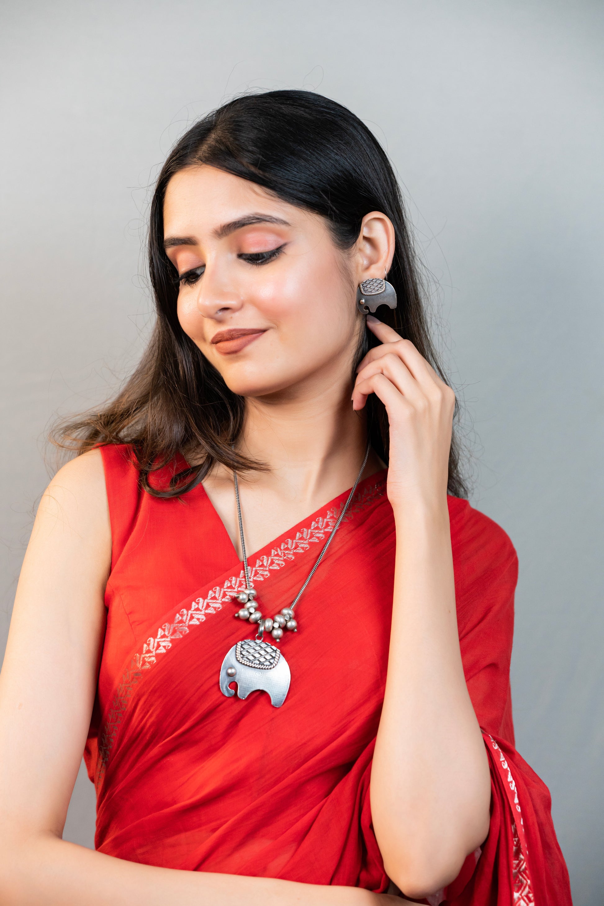 ⦿ 𝐌𝐚𝐭𝐜𝐡𝐢𝐧𝐠 𝐒𝐭𝐮𝐝 𝐄𝐚𝐫𝐫𝐢𝐧𝐠𝐬: The earrings feature a similar elephant design, crafted in German silver, with secure back closure for a comfortable fit.