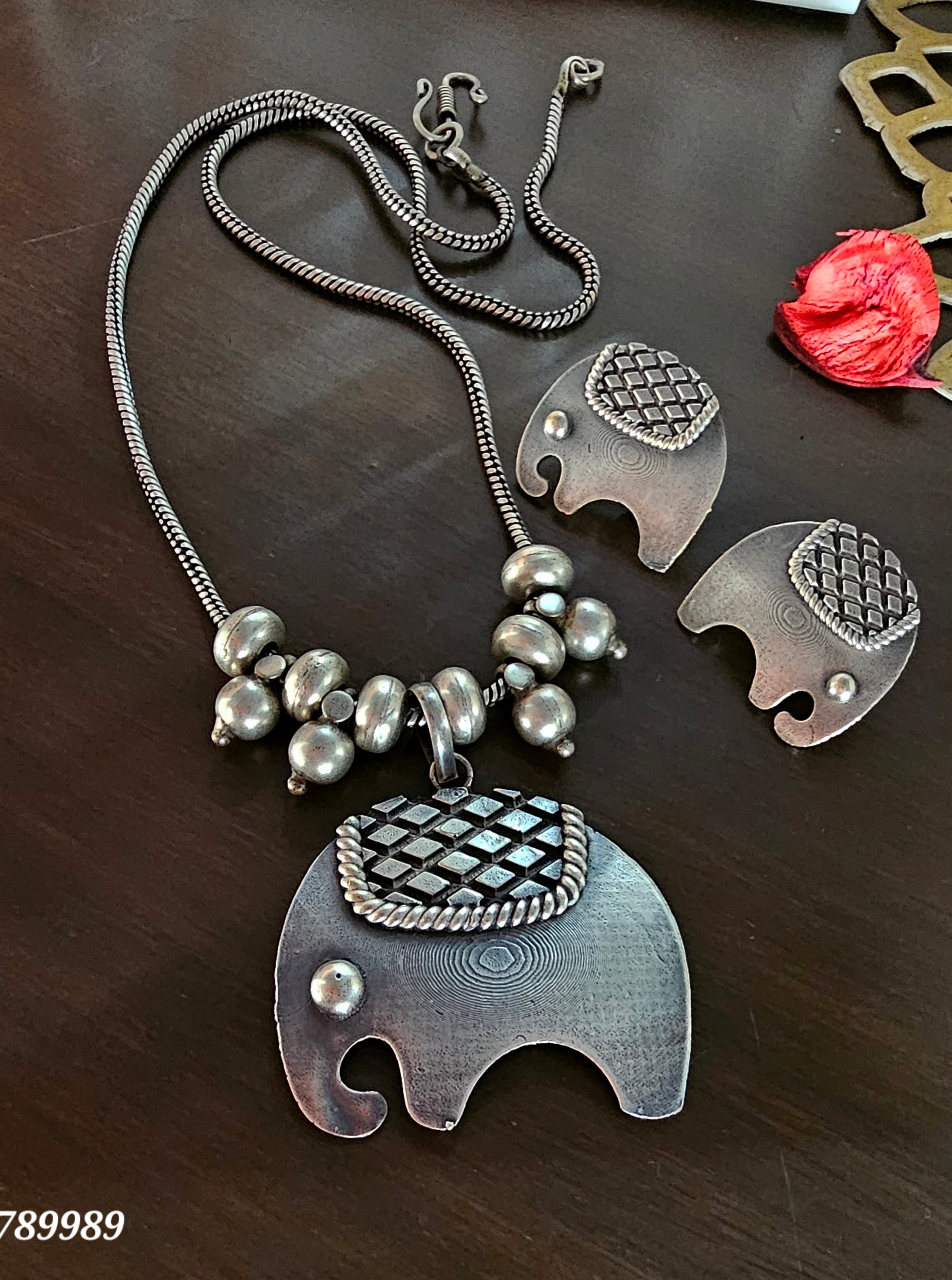 ⦿ 𝐄𝐥𝐞𝐩𝐡𝐚𝐧𝐭 𝐏𝐞𝐧𝐝𝐚𝐧𝐭: The necklace is adorned with a pendant shaped like an elephant, crafted from German silver for a timeless design.