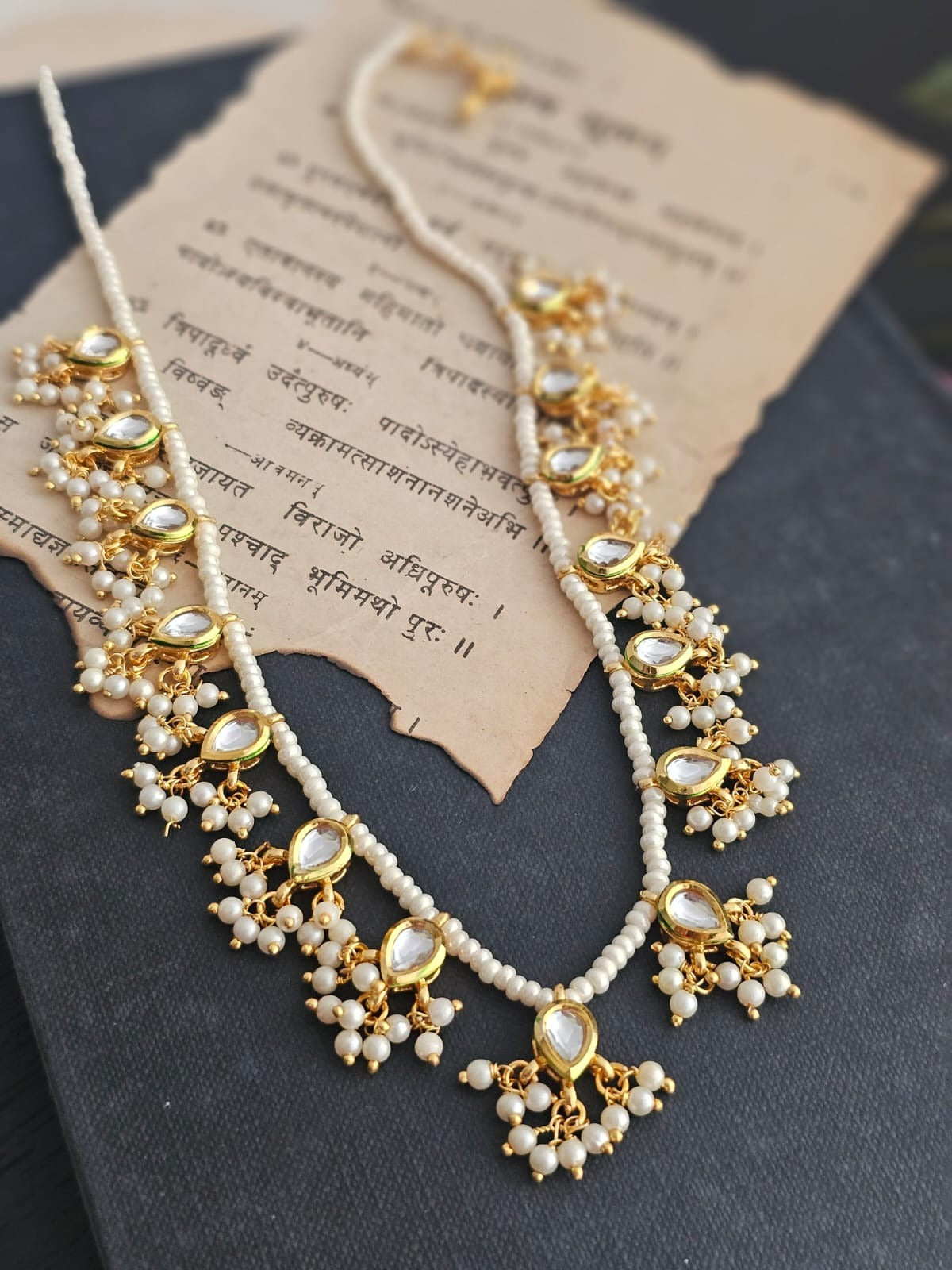 The necklace is secured with a durable chain closure and an S-hook, ensuring a snug and adjustable fit. Its carefully crafted design makes it perfect for various occasions, from weddings to festive celebrations, pairing seamlessly with ethnic and contemporary outfits alike.