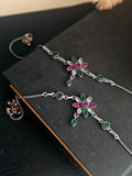 Adorned with vibrant kundan flower elements, these anklets feature a delightful interplay of green and pink hues. The intricate floral designs enhance their charm, making them a standout piece for any occasion.