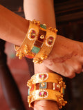 Crafted in pure brass, the bracelet features intricate handwork that lends a touch of royal finesse. The fusion of antique finish and contemporary design makes it perfect for festive occasions or everyday glamour. Pair it with ethnic ensembles or modern silhouettes — this bracelet effortlessly elevates any look with its timeless glow and artistic allure, a true reflection of Binnis elegance.
