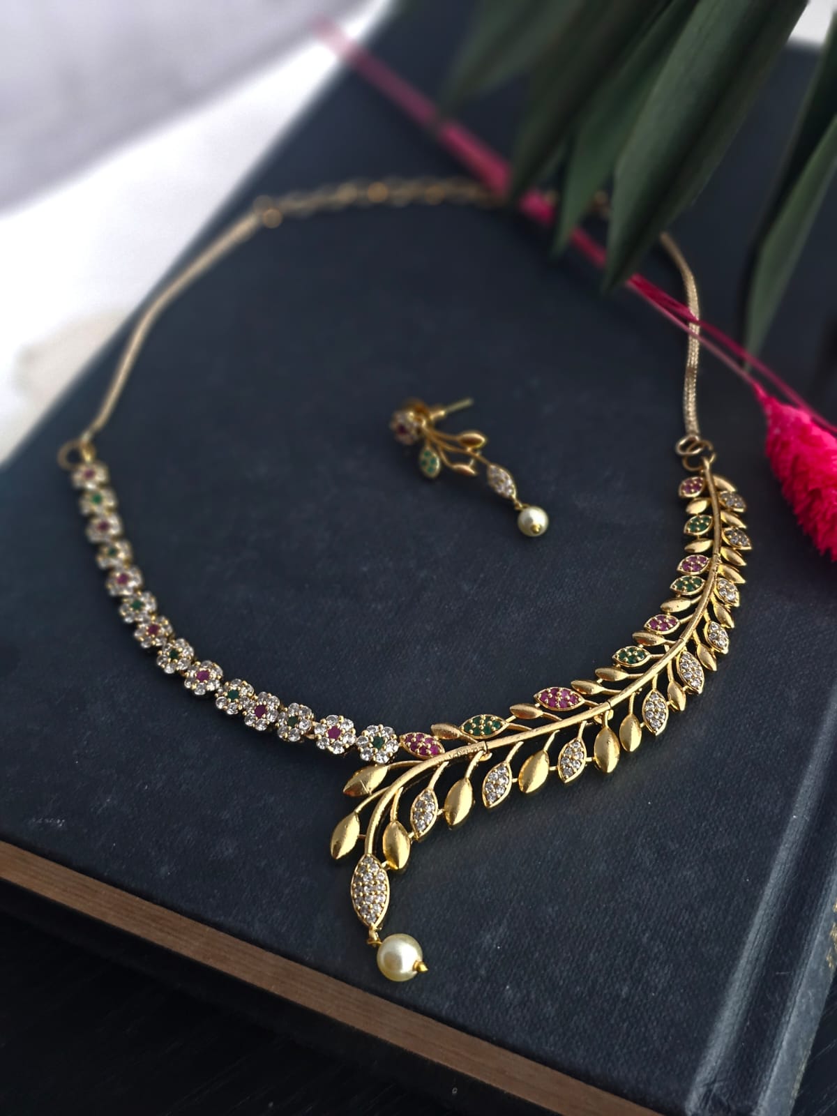 Jiva Leaf Motif Golden Elegance Necklace Set