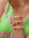Radiating elegance with a modern twist, the Glass Stone Fusion Brass Bracelet is a stunning blend of artistry and allure. Crafted in brass with a rich antique golden polish, it features luminous glass stones that capture light beautifully, creating a soft, enchanting shimmer.