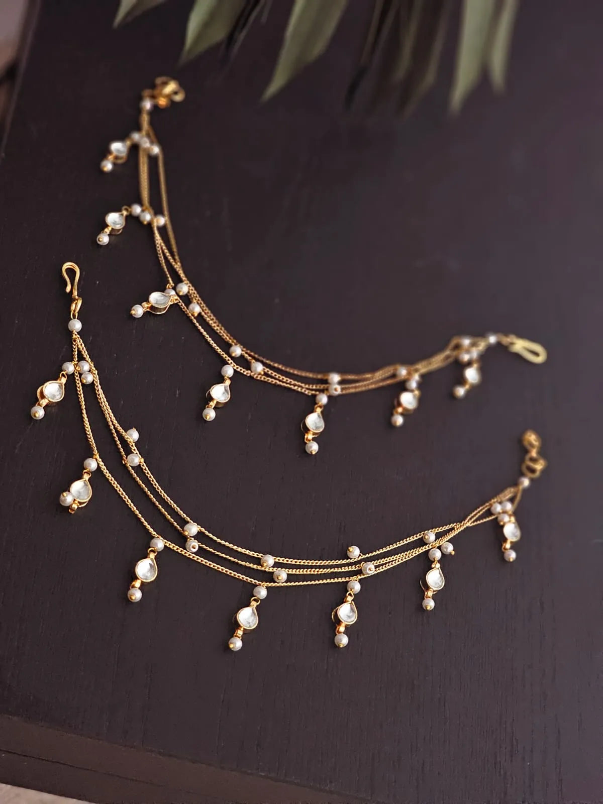 Aadhya Multilayered Pearl & Kundan Anklets