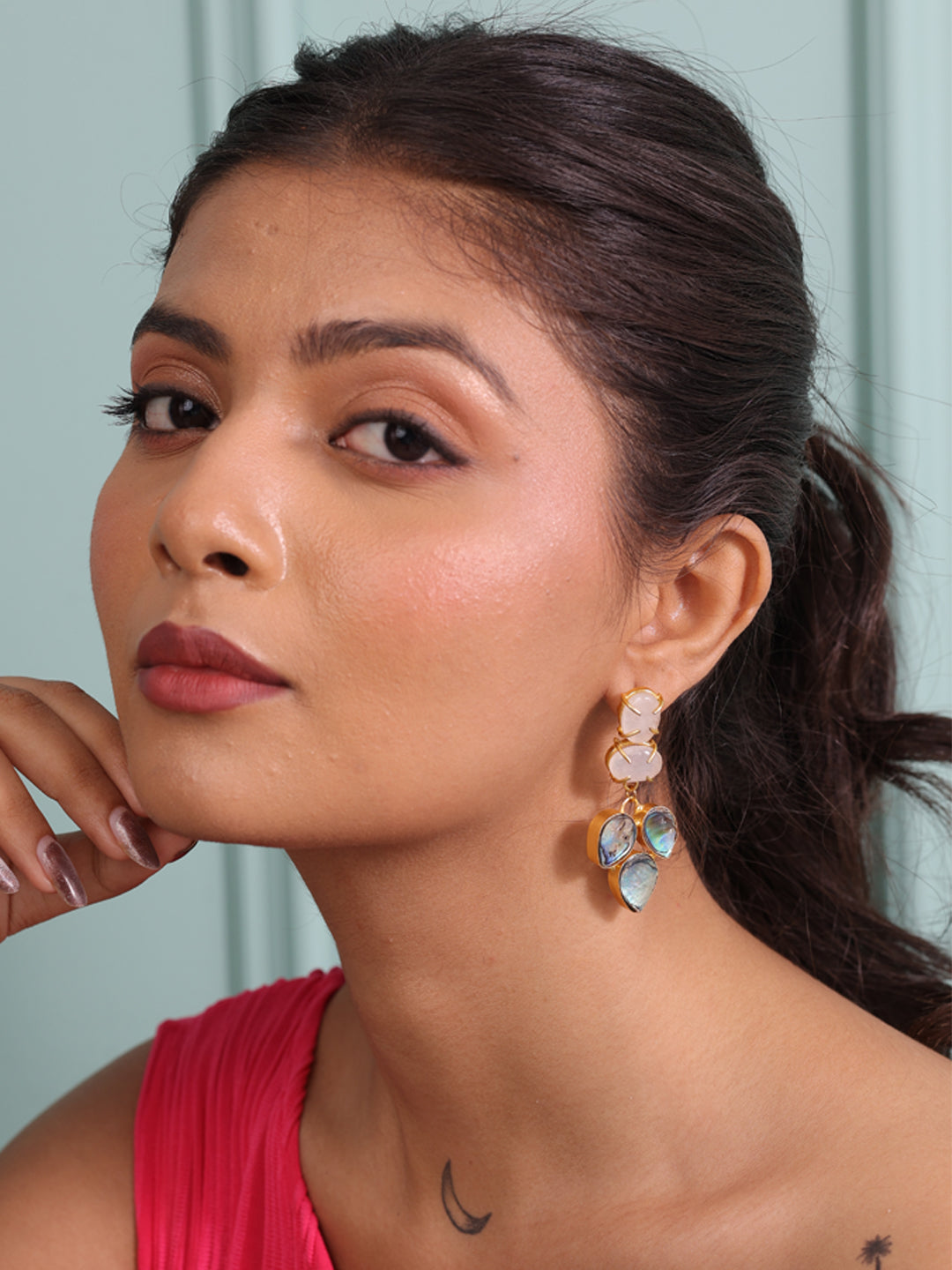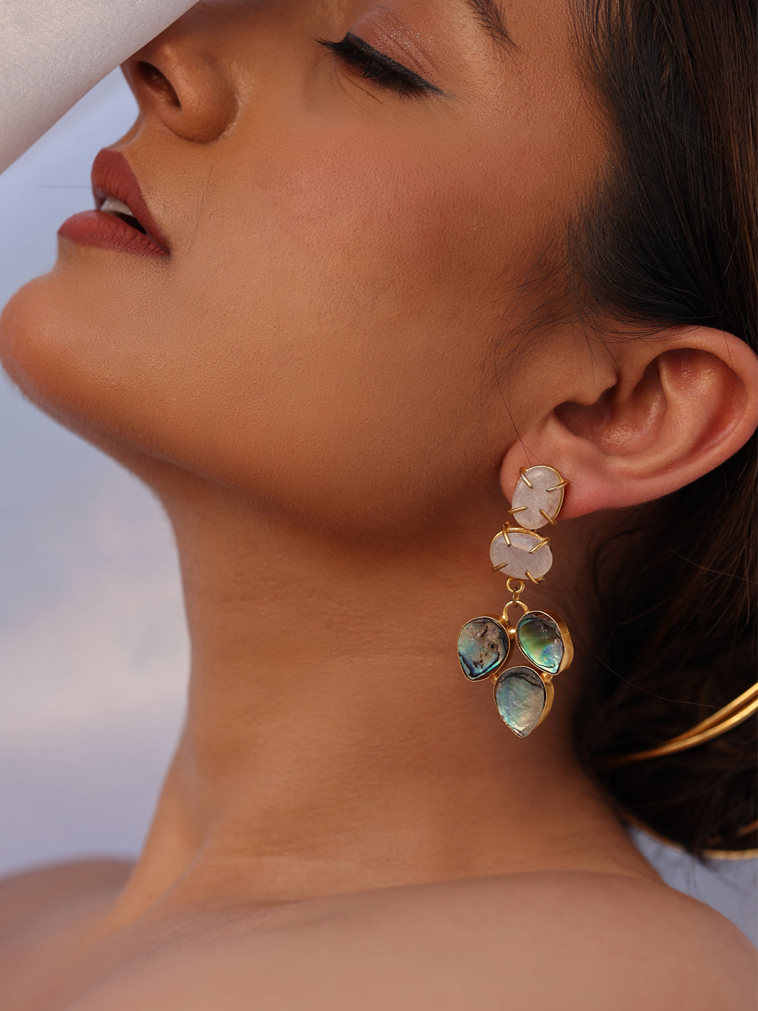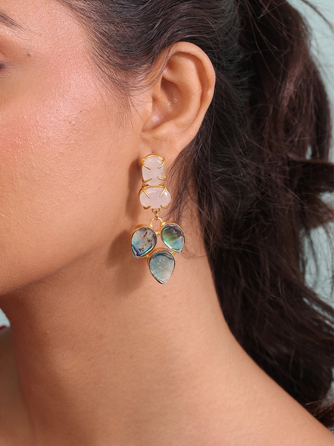 Delight in the soft allure of these exquisite earrings, featuring shimmering abalone stones in a dreamy pastel palette. Each stone captures the iridescent beauty of nature, creating a harmonious blend of modern elegance and natural charm.