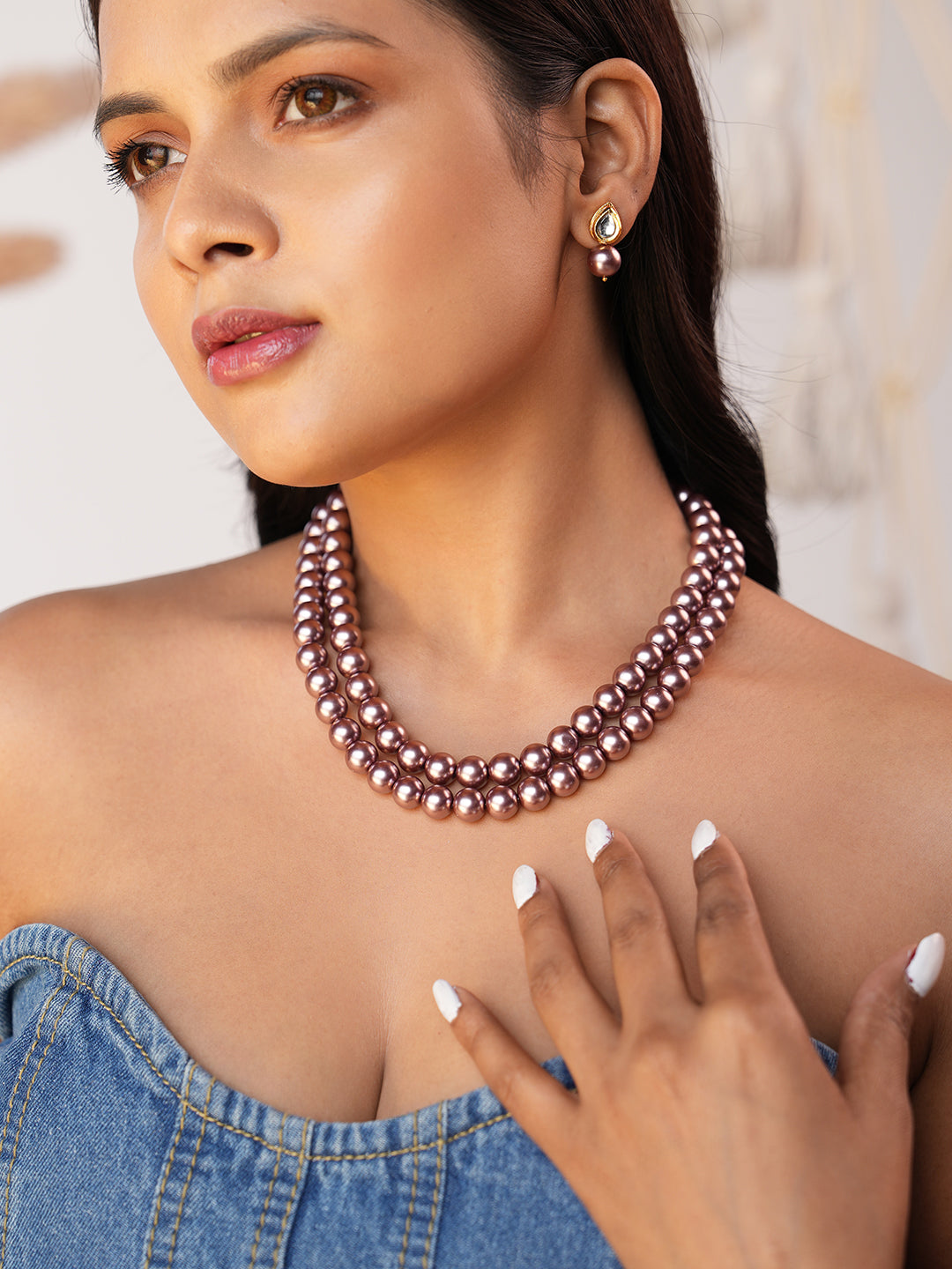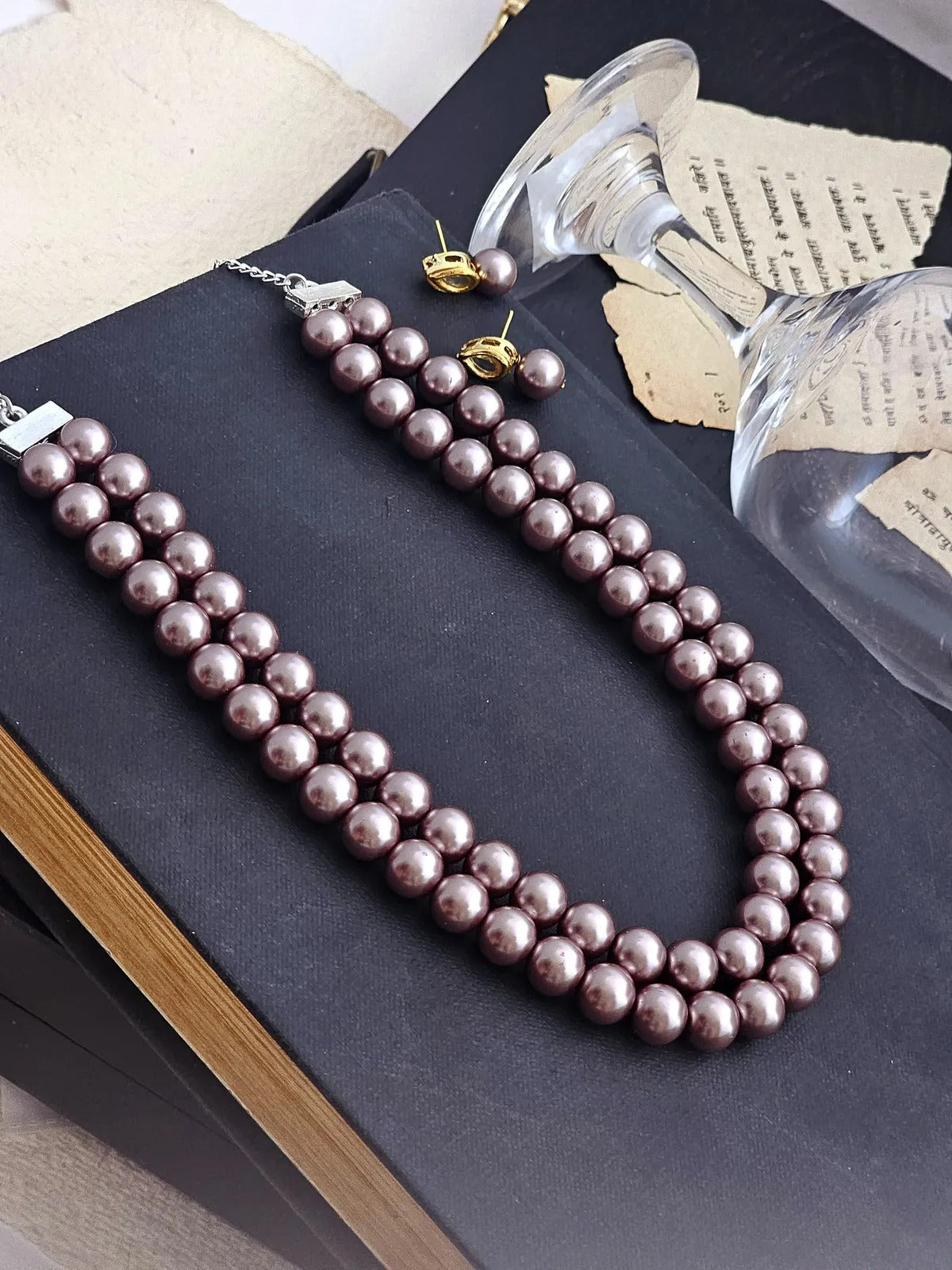 Lavanya Handcrafted Lavender-Hued Double-Strand Pearl Necklace Set