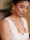 Enhance your look with the Apala Plating Long Ghunghroo Earrings with Ear Chain, a stunning piece of traditional-inspired jewelry. These long earrings, crafted from premium brass, feature intricate Apala plating that exudes a vintage charm and timeless appeal.