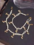 The 𝑺𝒊𝒕𝒂𝒓𝒂 𝑷𝒂𝒄𝒉𝒊 𝑲𝒖𝒏𝒅𝒂𝒏 𝑷𝒆𝒂𝒓𝒍 𝑨𝒏𝒌𝒍𝒆𝒕𝒔 radiate timeless elegance with their adorable 𝒔𝒆𝒆𝒅 𝒑𝒆𝒂𝒓𝒍𝒔 and exquisite 𝒑𝒂𝒄𝒉𝒊 𝒌𝒖𝒏𝒅𝒂𝒏 𝒆𝒎𝒃𝒆𝒍𝒍𝒊𝒔𝒉𝒎𝒆𝒏𝒕𝒔. These delicate adornments dangle gracefully along 𝒄𝒍𝒖𝒔𝒕𝒆𝒓𝒔 𝒐𝒇 𝒘𝒉𝒊𝒕𝒆 𝒑𝒆𝒂𝒓𝒍𝒔, creating charming, fluid movements. Crafted with care, these anklets feature a 𝒔𝒆𝒄𝒖𝒓𝒆 𝒉𝒐𝒐𝒌 𝒄𝒍𝒐𝒔𝒖𝒓𝒆 and offer the perfect blend of tradition and sophistication, elevating your ethnic or fusion outfits effortlessly.