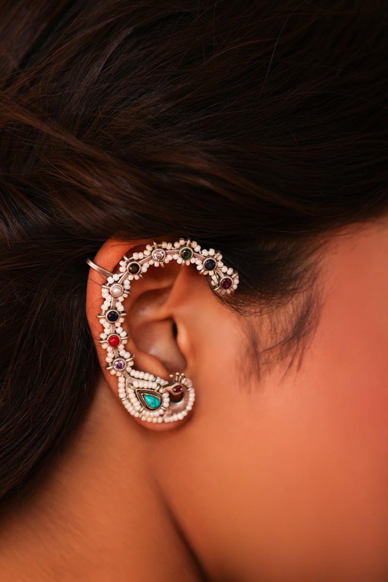 Designed for a non-pierced fit, the Floral Mirage earcuff wraps comfortably around the ear, offering a statement-making accessory that requires no piercing but delivers a royal touch of glamour. Whether worn for a special occasion or as a daily dose of luxury, this earcuff is the perfect balance of nature-inspired beauty and modern design.