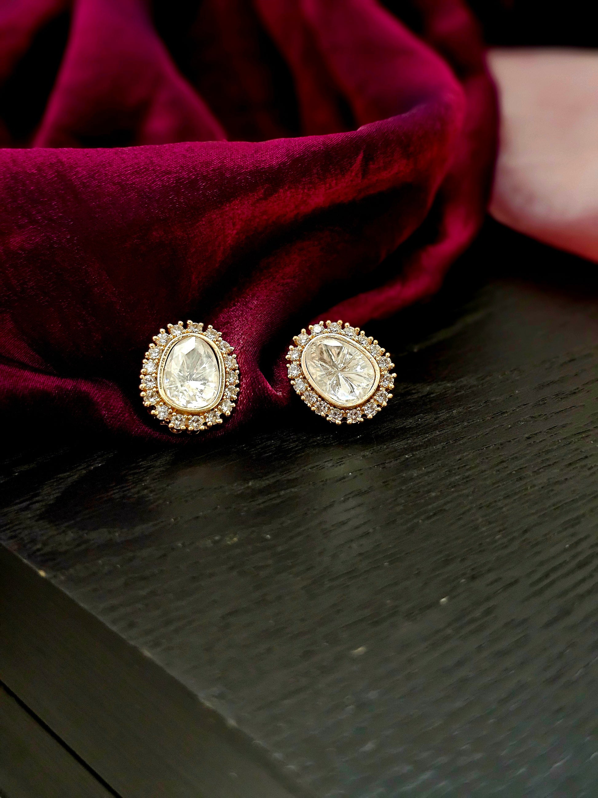 Delicate and timeless, these studs capture the ethereal beauty of kundan artistry in a petite and elegant design. Each piece showcases a floral-inspired arrangement of radiant kundan stones, reflecting a soft, luminous glow that adds a touch of sophistication to your ensemble.