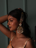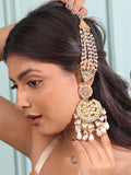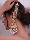 Designed for both comfort and style, the secure pushback closure and attached ear chain ensure a flawless fit and effortless elegance. Celebrate the allure of tradition with this stunning masterpiece of kundan artistry..