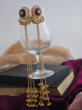 Elegant and rhythmic, the Melody Drape Earrings dance with every movement, graced by delicately hanging ghunghroos that create a soft, melodious charm. Their elongated silhouette flows beautifully, adding a touch of sophistication and allure.