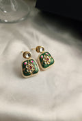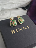 Handmade with love in pure brass, these petite green earrings feature delicate carving that evokes a touch of nature’s elegance. Their soft hue and artisanal detailing make them a charming everyday accent, secured comfortably with a classic push-back closure.