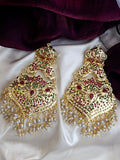 Exquisitely handcrafted in pure brass, these long drop earrings showcase timeless jadau artistry with intricate detailing. Designed to sway with grace and grandeur, they’re secured with a push-back closure — perfect for adding a royal finish to your festive ensemble.